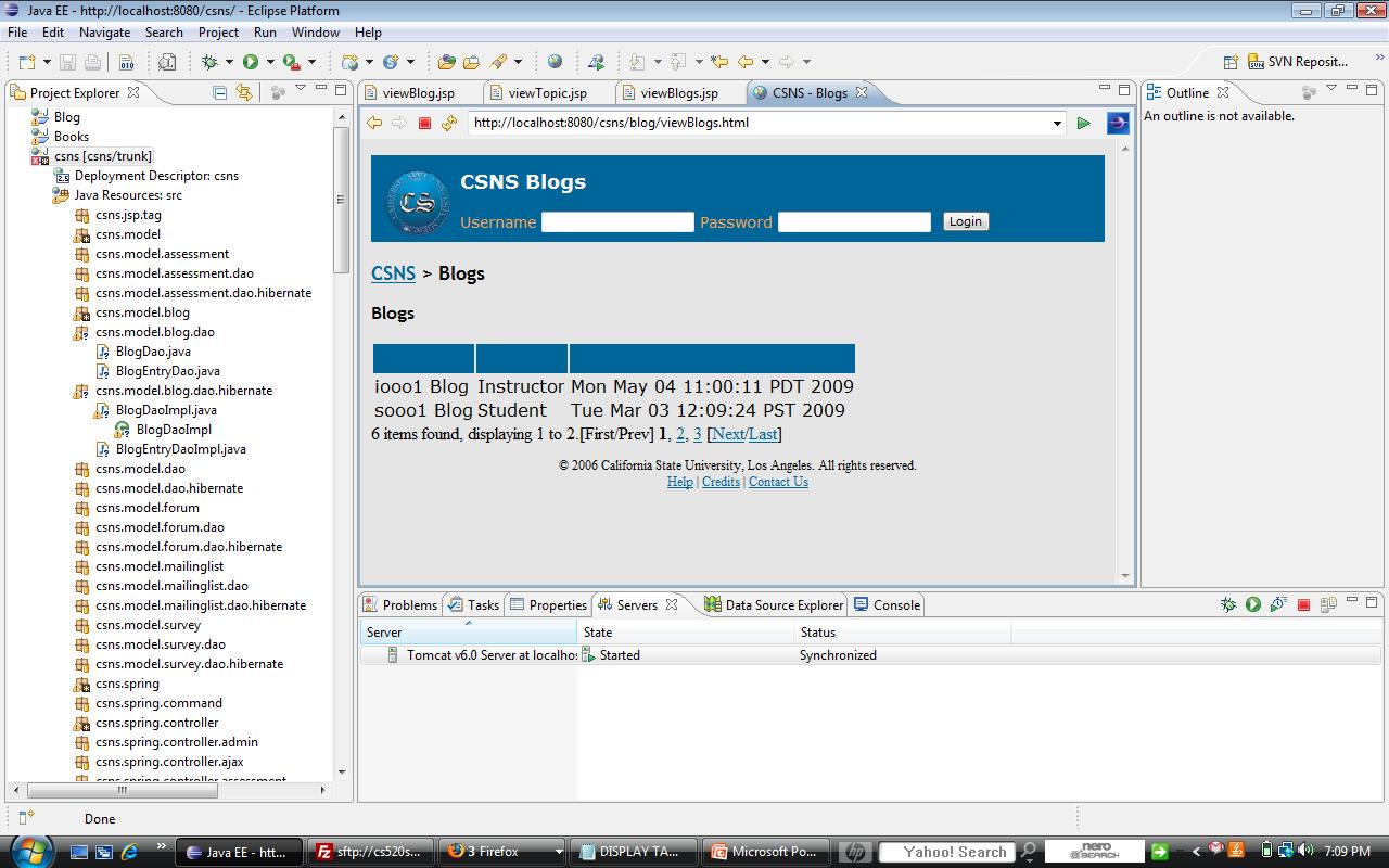 <display:table name="blogs" uid="blog" requestURI="viewBlogs.html" pagesize="2" class="viewtable"> and paging works ..but it does not display properly...i.e title are not displayed and even css style "viewtable" does not give any effect |