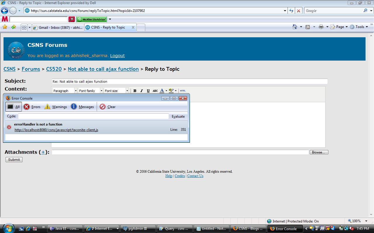 taconite-client.js is part of the Taconite library. If the problem is with the library itself, I don't know how to fix it. With that said, since the message says something about errorHandler, my guess is that there's some problem in the response. and fixing that problem may fix this, too. |