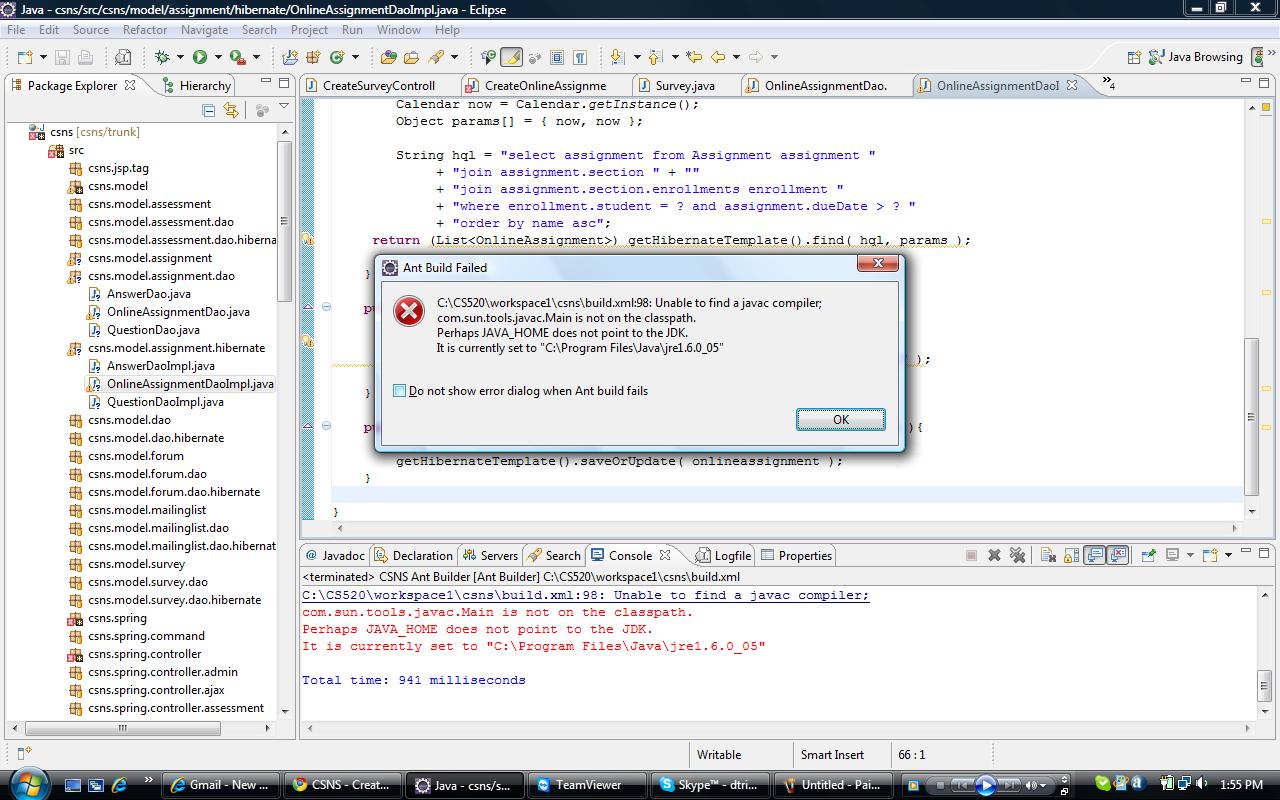 trivedidr, By following the naming convention, your package csns.model.assignment.hibernate shall be named as csns.model.assignment.dao.hibernate |
