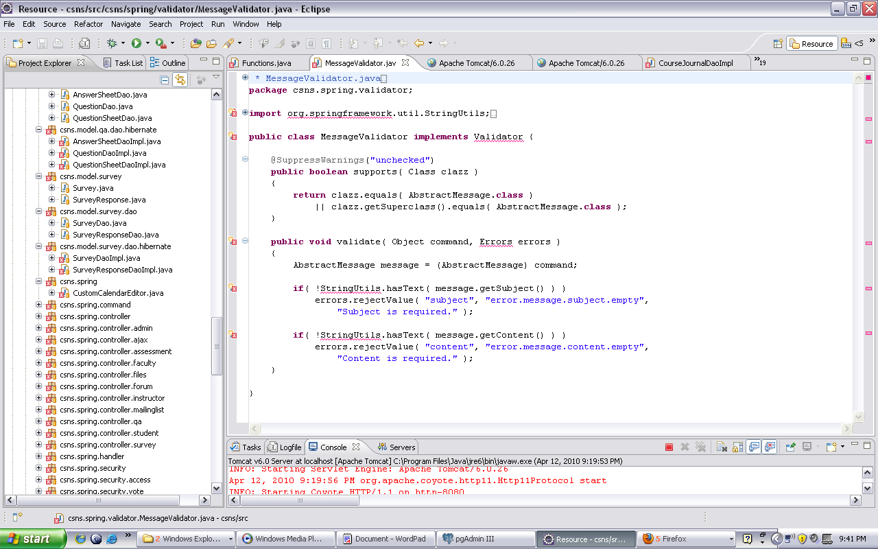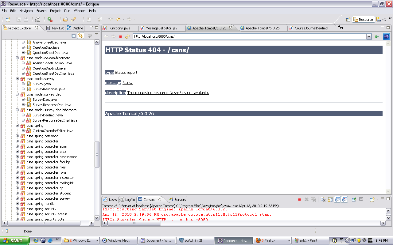Hello Professor Sun, While running setup first time it is giving me HTTP Status 404 - /csns/ error instead of CSNS page. I am getting errors in java files only as following: