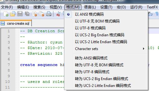 I've noticed that some students converted the db scripts to UTF encoding as shown in the screenshot below. This causes problem for me during grading because I run all the scripts from command line and my Windows console does not support UTF. What this means is that some parts of the scripts will fail due to some unrecognized characters. So before you submit your homework, please make sure the following scripts are encoded in either ANSI/ASCII or ISO 8859-1.