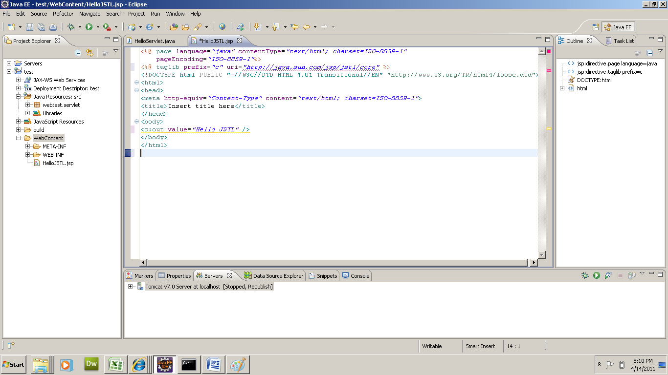 When setting up the project according to This Page: http://csns.calstatela.edu/wiki/content/cysun/course_materials/eclipse AND Section regarding JSP test page