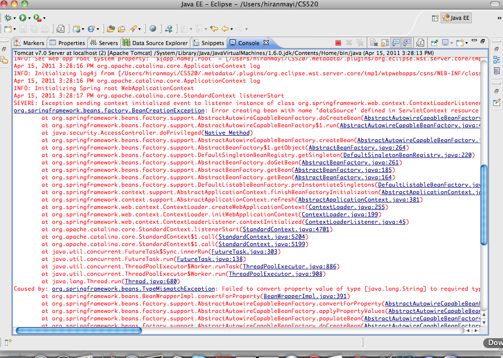 okay..I was getting same errors.In my case I was restarting tomcat server again and again..so it got messed up. Try closing eclipse and restarting it again. do not restart tomcat if it is already started when you run the project. Try it. |