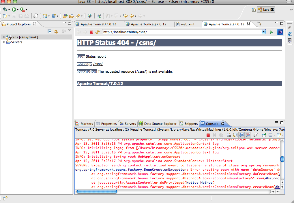 I deleted csns-*.xml files from WEB-INF folder but it still throws this exception when i am trying to start the server :