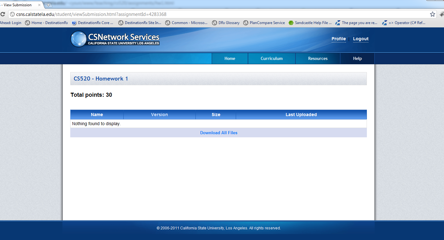 Ok thanks professor. I actually just had to build the project. Odd thing though when I built the project the zip file was being created in C->users directory rather then my project directory which is C->development->cs520. Is that by default. I am sure its defined in the pom file. I am running on a vista machine. |