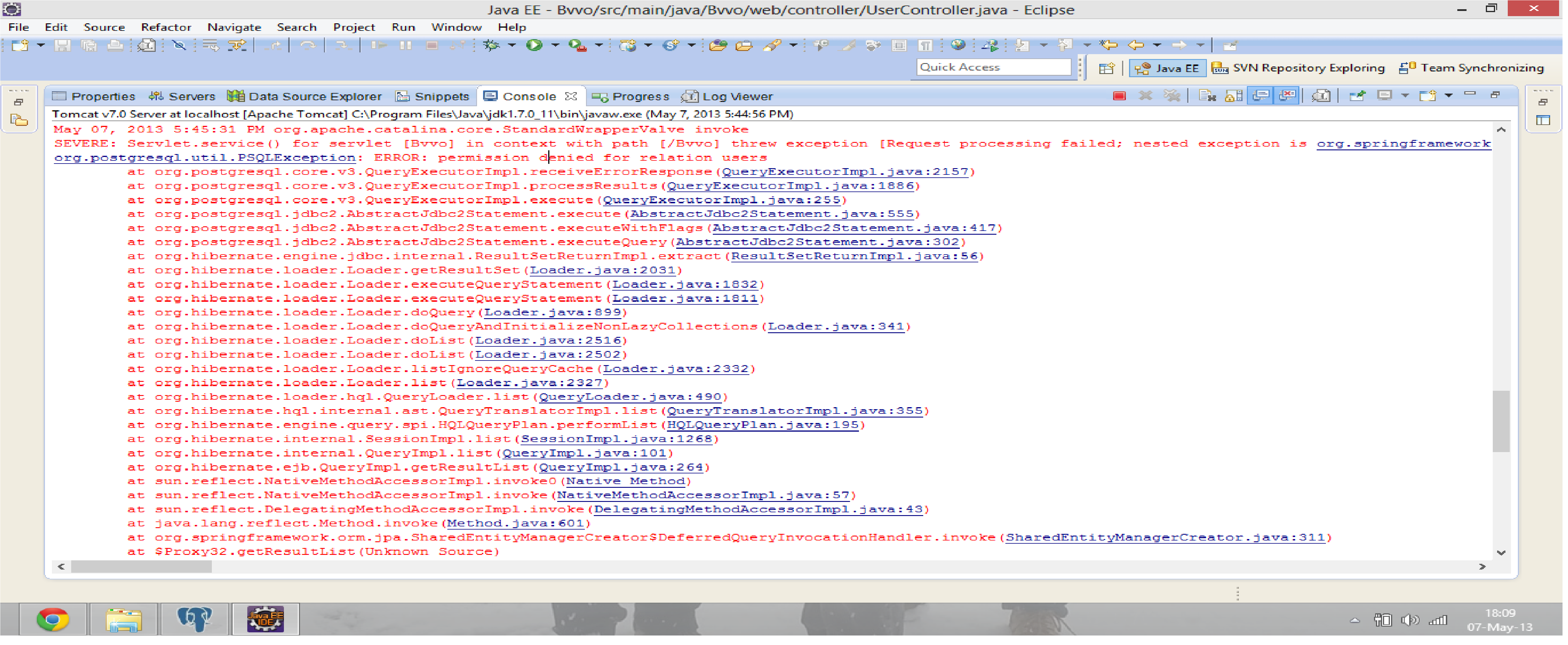 Professor, When I am tring to retrieve the values from database I am getting the following error. org.postgresql.util.PSQLException: ERROR: permission denied for relation users. Please help me with this |