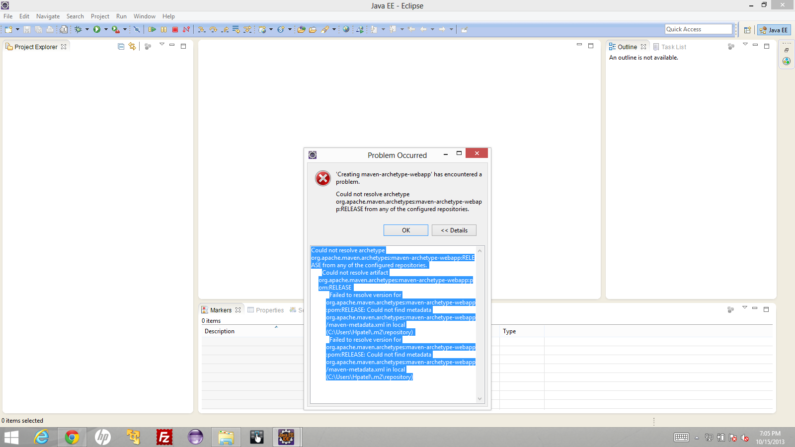 Could not resolve archetype org.apache.maven.archetypes:maven-archetype-webapp:RELEASE from any of the configured repositories. |