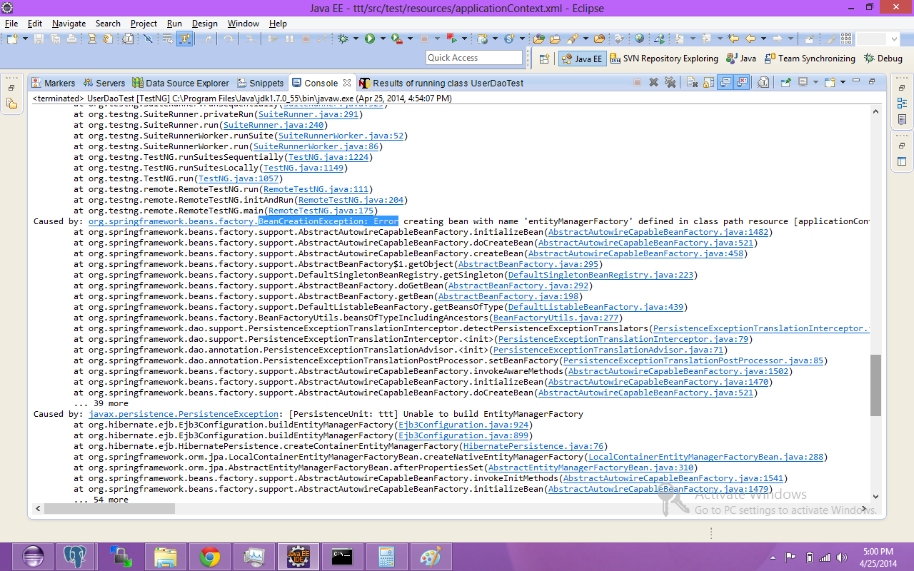 Apr 25, 2014 11:39:24 PM org.springframework.orm.jpa.LocalContainerEntityManagerFactoryBean createNativeEntityManagerFactory