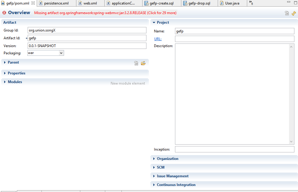 i had the same error "Cannot instantiate class gefp.model.dao.UserDaoTest" and it seem that i also used 4.1.4.RELEASE for spring-test dependency. However, when i tried to build the pom.xml file after i changed spring-test dependency to 3.2.8.RELEASE, it always show error on pom.xml file, Can you please help me with it? Thank you. |