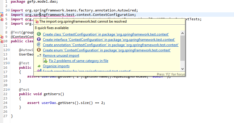 After i updated the project, there was no more error in the pom.xml but show new errors in the UserDaoTest file as follows: Can you please help me figure it out? thank you |