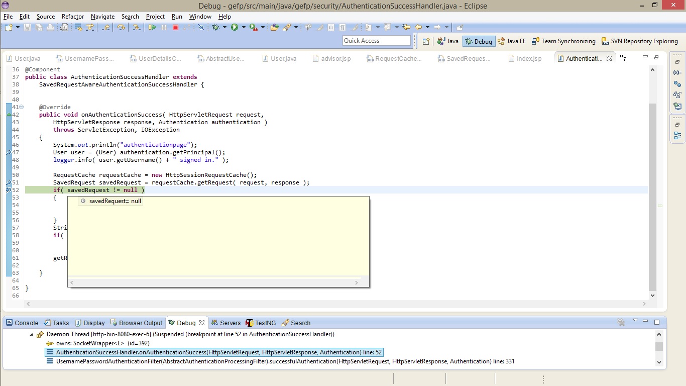 as per my understanding the saverequest has the url which we attempt 1st. for example. if I'm trying to access the url which is secured under /admin/** the spring security first redirects to the login page where it checks the user details and roles then it directs to the url which is specified. so the saverequest has the path which I attempted 1st. If I'm wrong please elaborate. |