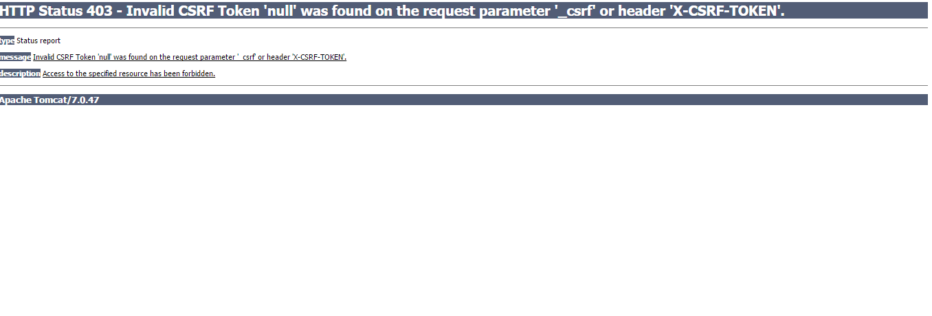 Invalid CSRF Token 'null' was found on the request parameter '_csrf' or header 'X-CSRF-TOKEN'