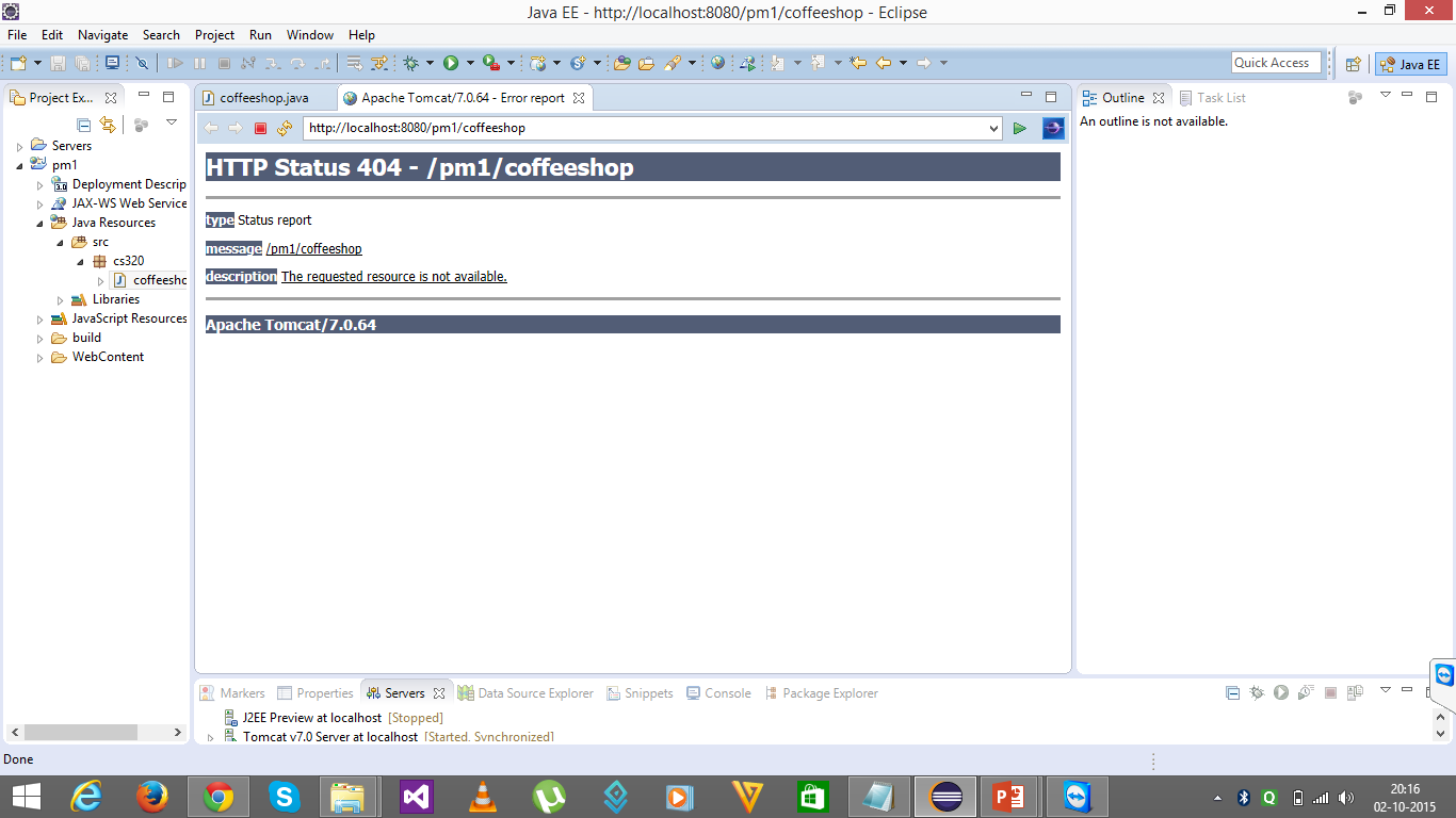 Hey Hi Priyal, There may be many reasons for your problem. But I think this may work. Go to the properties of your Tomcat Server v7.0 or v8.0 in Eclipse. And click on switch location. And restart the eclipse and your server. And may be you are good to go. |