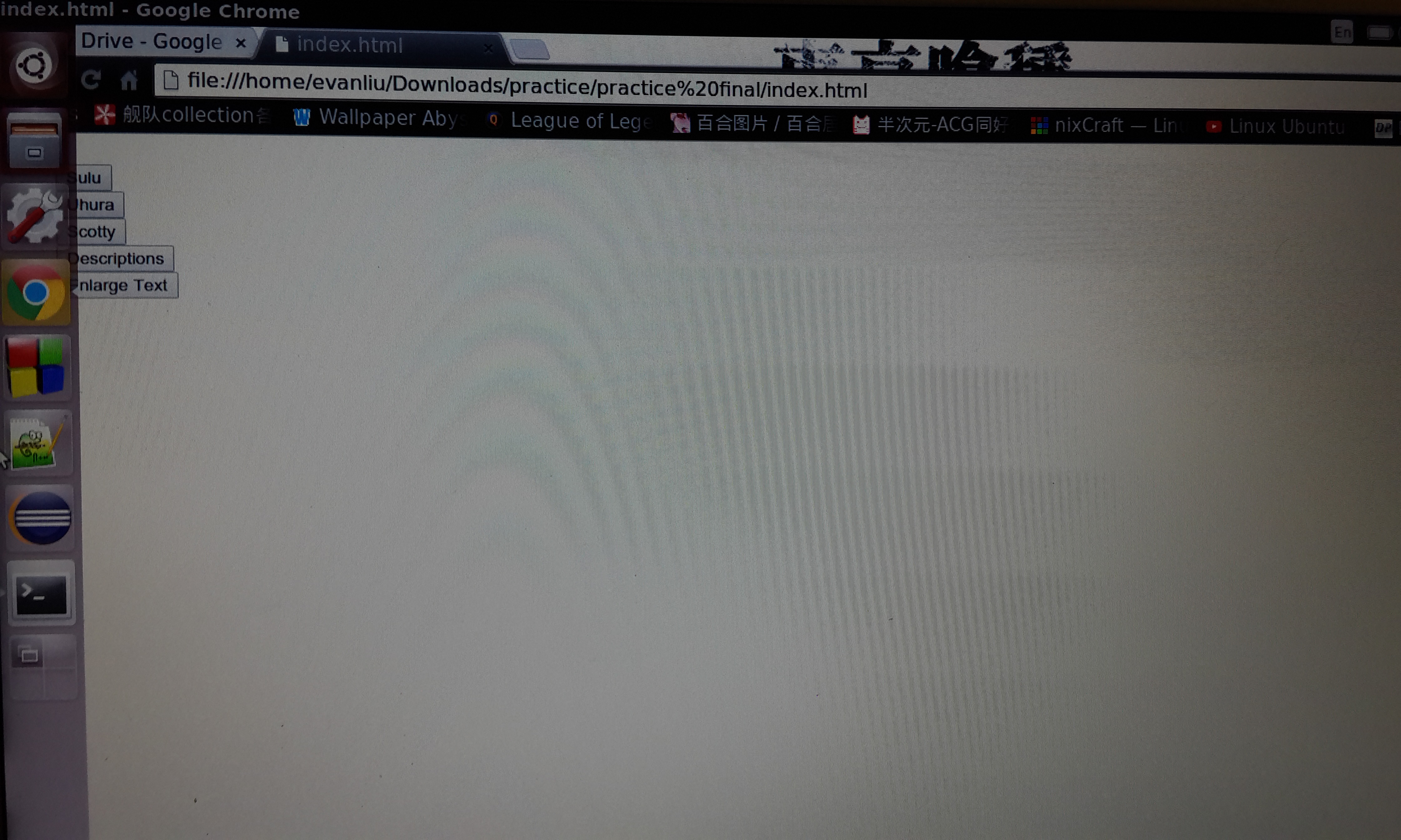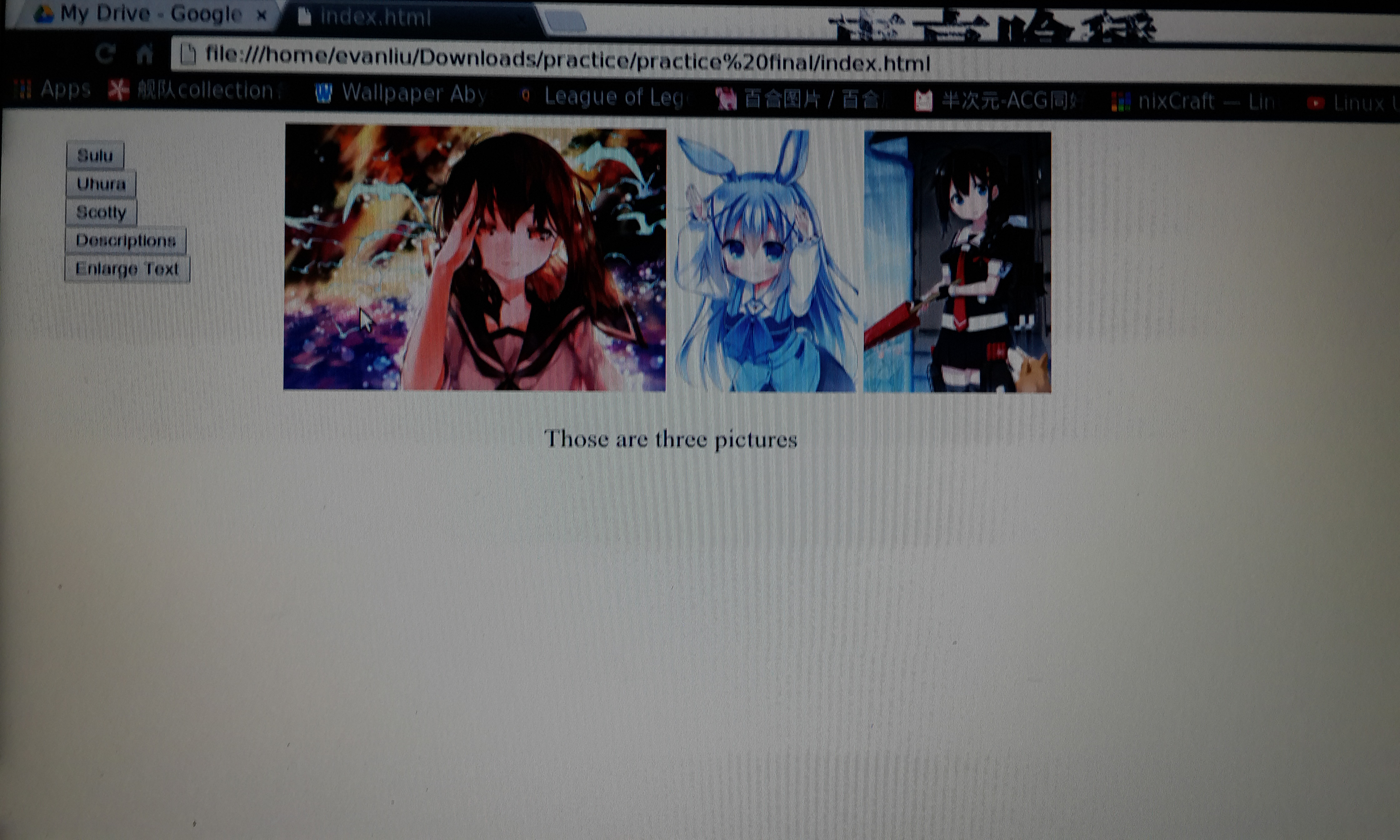 so your "function()" change it to "function showSulu()" but it wont affect functionality, btw your .hide will take more time to load since you are hiding each #sulu , #uhura,#scotty, and click show them, make a css property call img{display:none;} it will hide all img at load, which will save 4 lines of code and it makes load quicker Last edited by 4542elgh at
