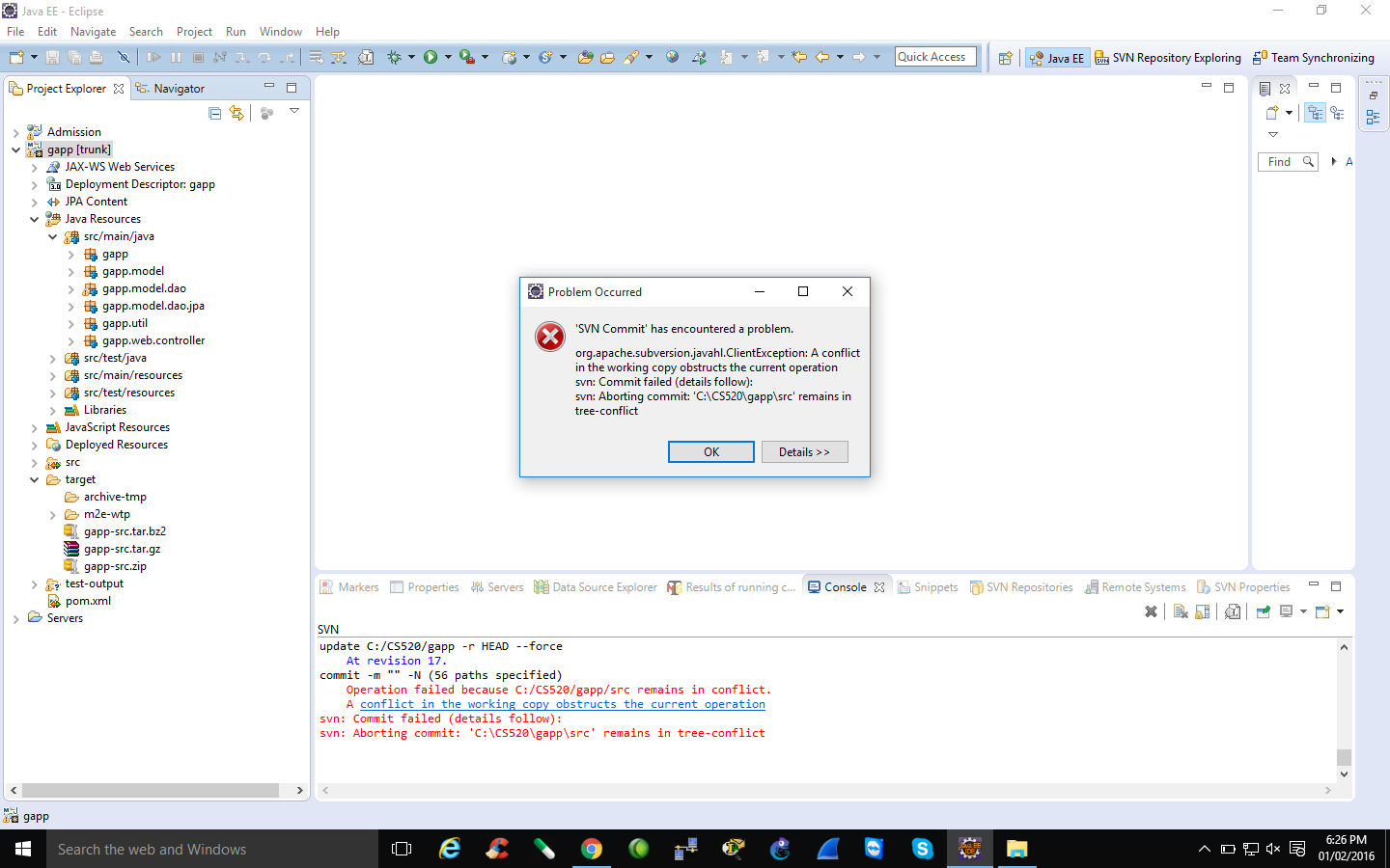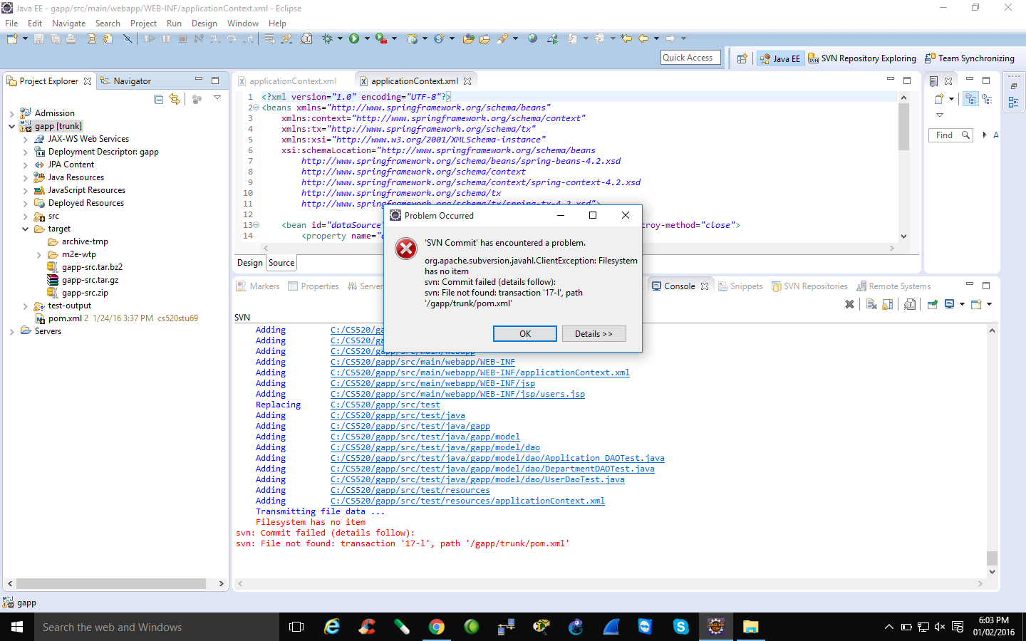 Professor, When I want to commit this home work 3 in SVN repository then I am getting "SVN Commi has countered a problem" error. plz check the screenshot. Last edited by onlinerajnish at
