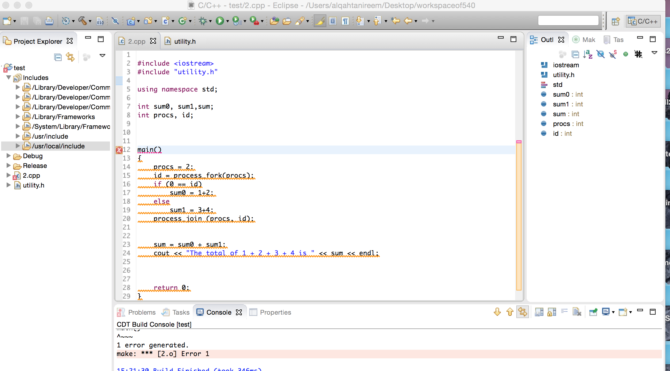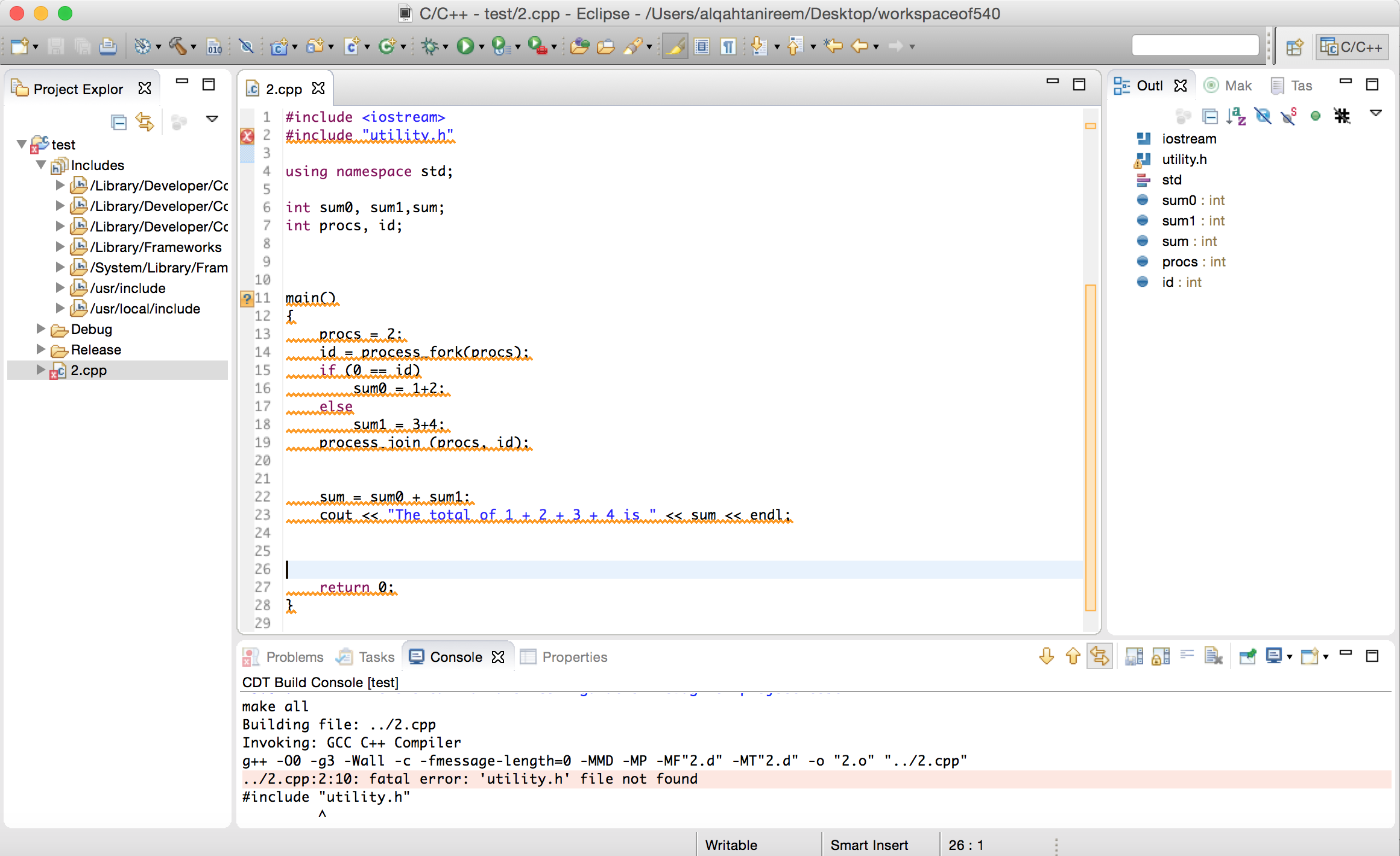 Hi all I'm not familiar with C++. I'm working on C/C++ Eclipse but I have this error--> fatal error: 'utility.h' file not found #include "utility.h" Is there any idea? Thank you.