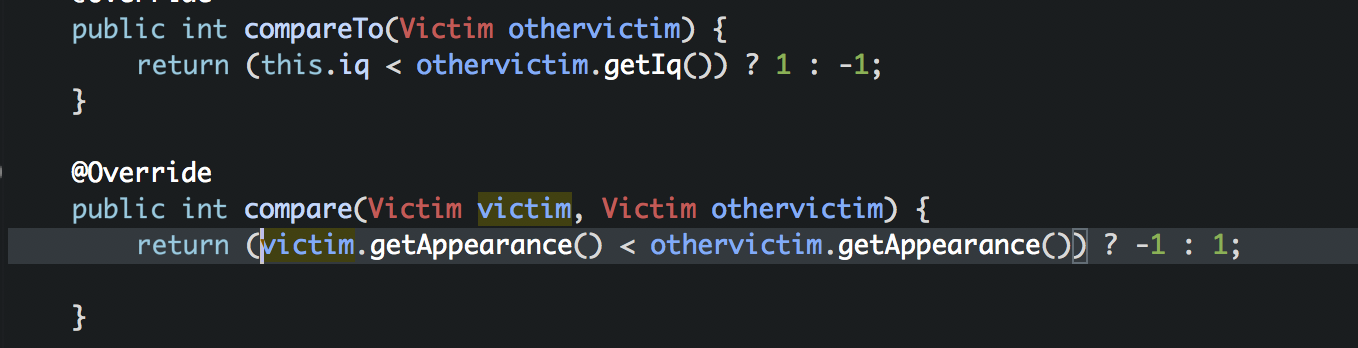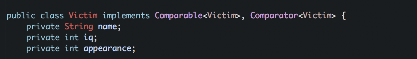 So I am almost finished with the assignment except one thing has be stumped. I implemented comparable into Victims and also comparator. The priority queue for victims automatically becomes sorted by the comparable implementation, how ever I do not know how to resort the list using comparator? |