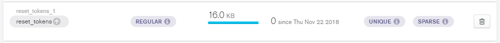 The index looks like this now reset_tokens.token_1: (unique and sparse) |